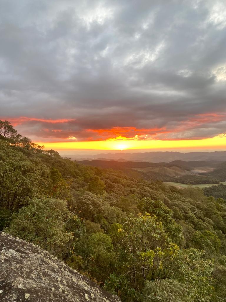 • Pôr do sol inesquecível nos altos da Mantiqueira, coroando a experiência.